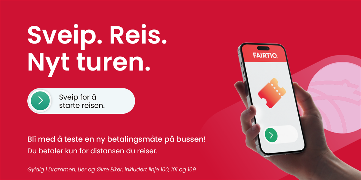 Fairtiq-piloten gjelder foreløpig for Brakars busslinjer i Drammen, Lier og Øvre Eiker, inkludert linje 100, 101 og 169.