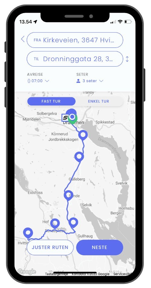 - Turen blir bekreftet så snart sjåføren har godkjent din forespørsel. Du blir så hentet på møtestedet som er avtalt i appen, til avtalt tid.
